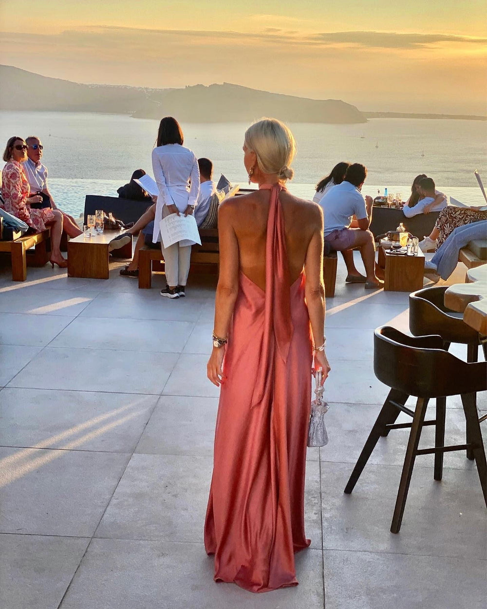 Satin Elegant Maxi long Dress: Backless Halter Neck