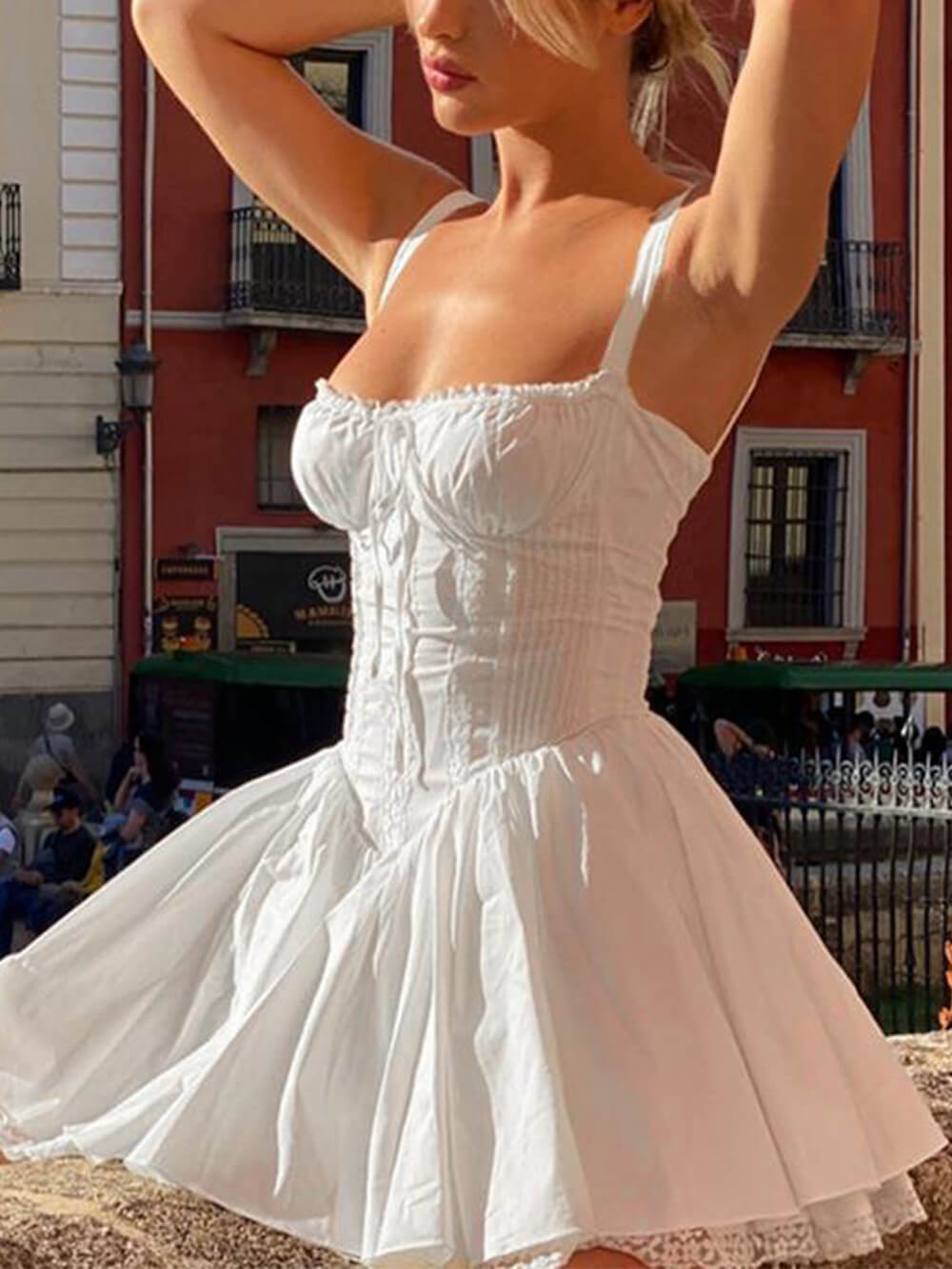 Chic and comfortable, this lace-trimmed mini dress brings timeless elegance to your everyday style.
